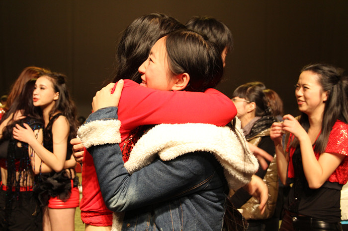 当晚演出结束,老师和学生们在演出结束的舞台上相拥而泣的场面着实感人。