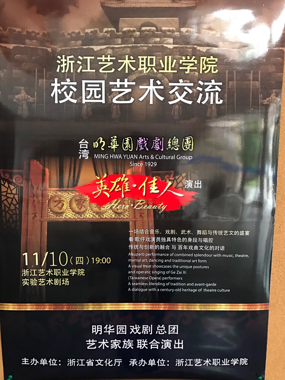 台湾明华园戏剧总团将于11月10日晚来我院进行交流演出,欢迎前往观看。