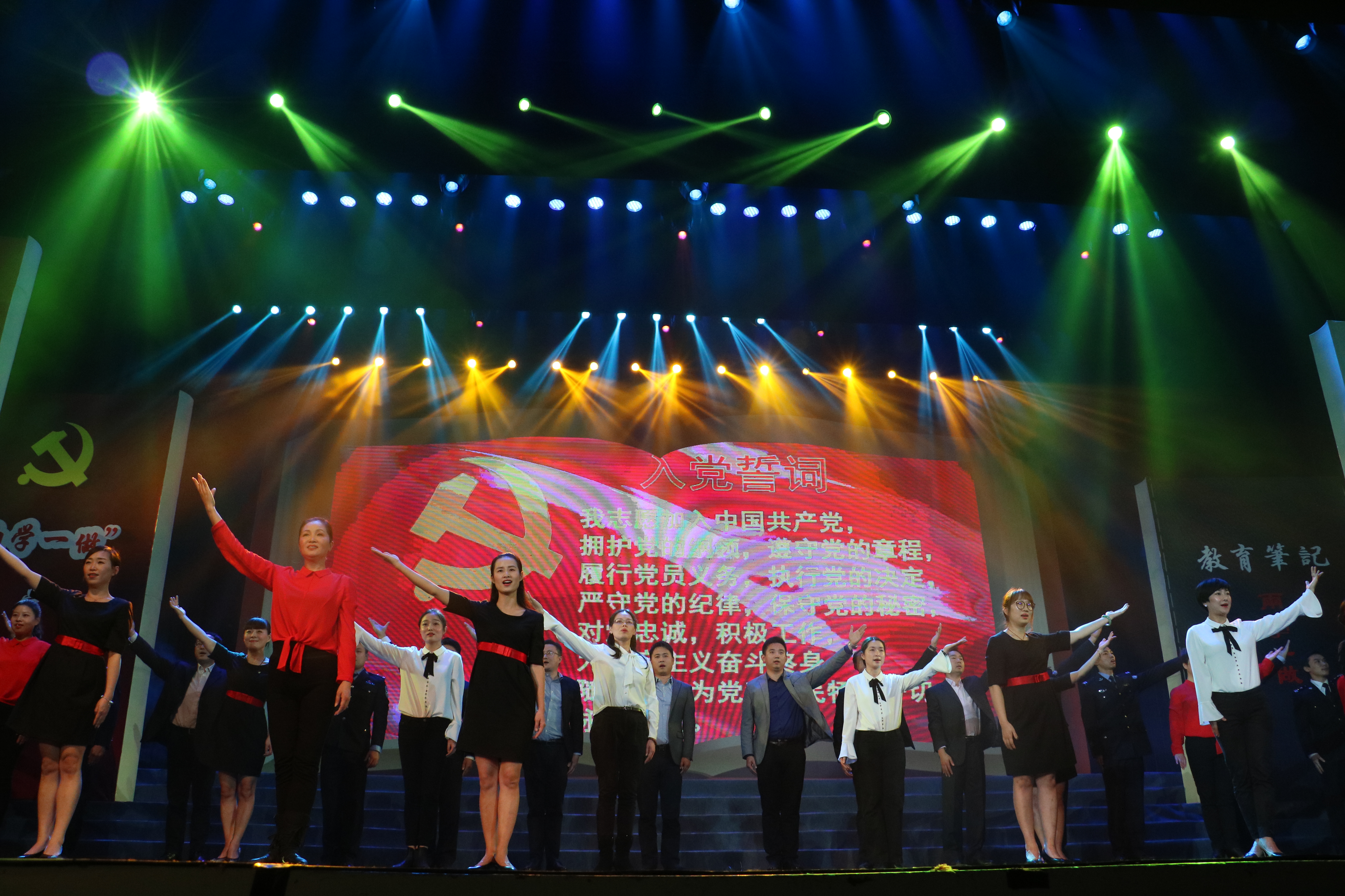 晚会现场聚集了来自全省各地的共产党员代表,他们共同学习、贯彻党的十八届六中全会精神,深入学习习近平总书记系列重要讲话精神,扎实开展“两学一做”,展现全省机关党员干部紧密团结在以习近平同志为核心的党中央周围,在省委的坚强领导下,永葆奋斗精神、永怀赤子之心,对党无限忠诚的新风貌。