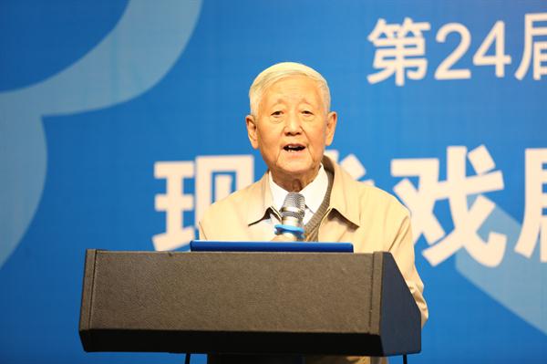 徐晓钟发表讲话。他说,20多年来,中国、韩国、日本三国戏剧艺术家一直在艺术上寻求一种共识,就是我们的三国的戏剧艺术,如何使自己民族的传统和现代有价值的戏剧文学相结合,如何构建我们自己的、民族的现代戏剧,让我们戏剧更好地与时代对话,与全球对话。23年以来,一方面是通过展示我们三国的戏剧舞台演出,另一方面就是通过戏剧艺术论坛,更好地交流我们三个国家的艺术家在这一方面的思索和实践。今天第24届BeSeTo(中韩日)戏剧节的国际学术研讨会的主题是“现代戏剧表演的国际视野和教育实践”,希望在我们的研讨会上,能够深刻地讨论、交流我们对这个主题的深刻思考。我想,这就是第24届BeSeTo(中韩日)戏剧节为我们三国戏剧艺术的发展,在我们美丽的杭州开出的又一支花,结的又一个果。