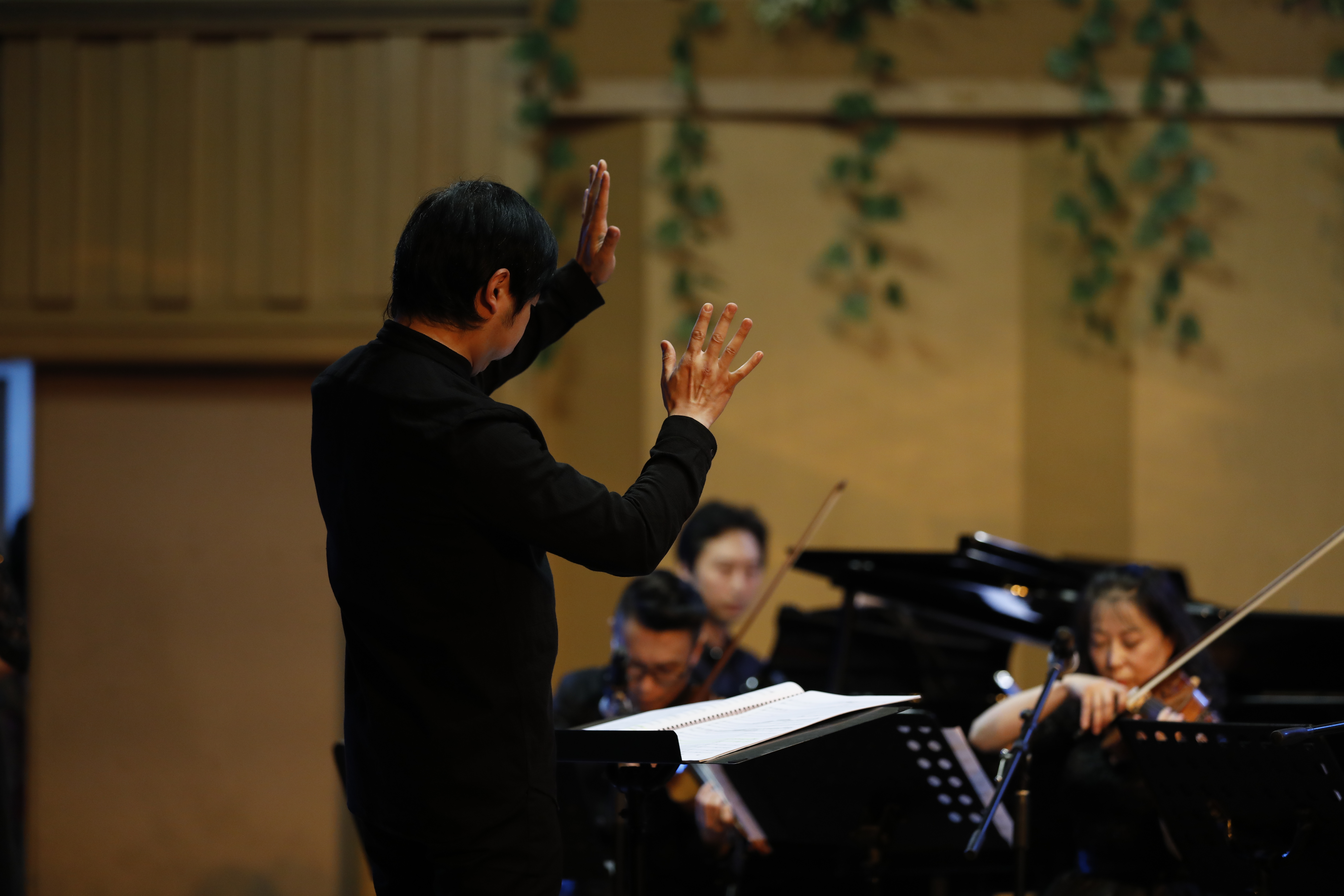 全场音乐会的乐曲有诗意,有越韵,有现代音乐词汇彼此相交融。作曲家丁樱的《剡水曲》,探索中国音乐的张力表现,虚实之变、动静之变、清浊之变,有着强烈深沉的音乐表现;青年作曲家景新的《神隐西罨居》,则运用了浙江仙居童谣的音乐素材,用西洋管弦乐与中国拉弦乐器、弹拨乐器共同演绎。这种新颖的音响与结构有着当代年轻作曲家的表达方式,不同乐器在乐曲进行中流淌、静止,而又互相编织。