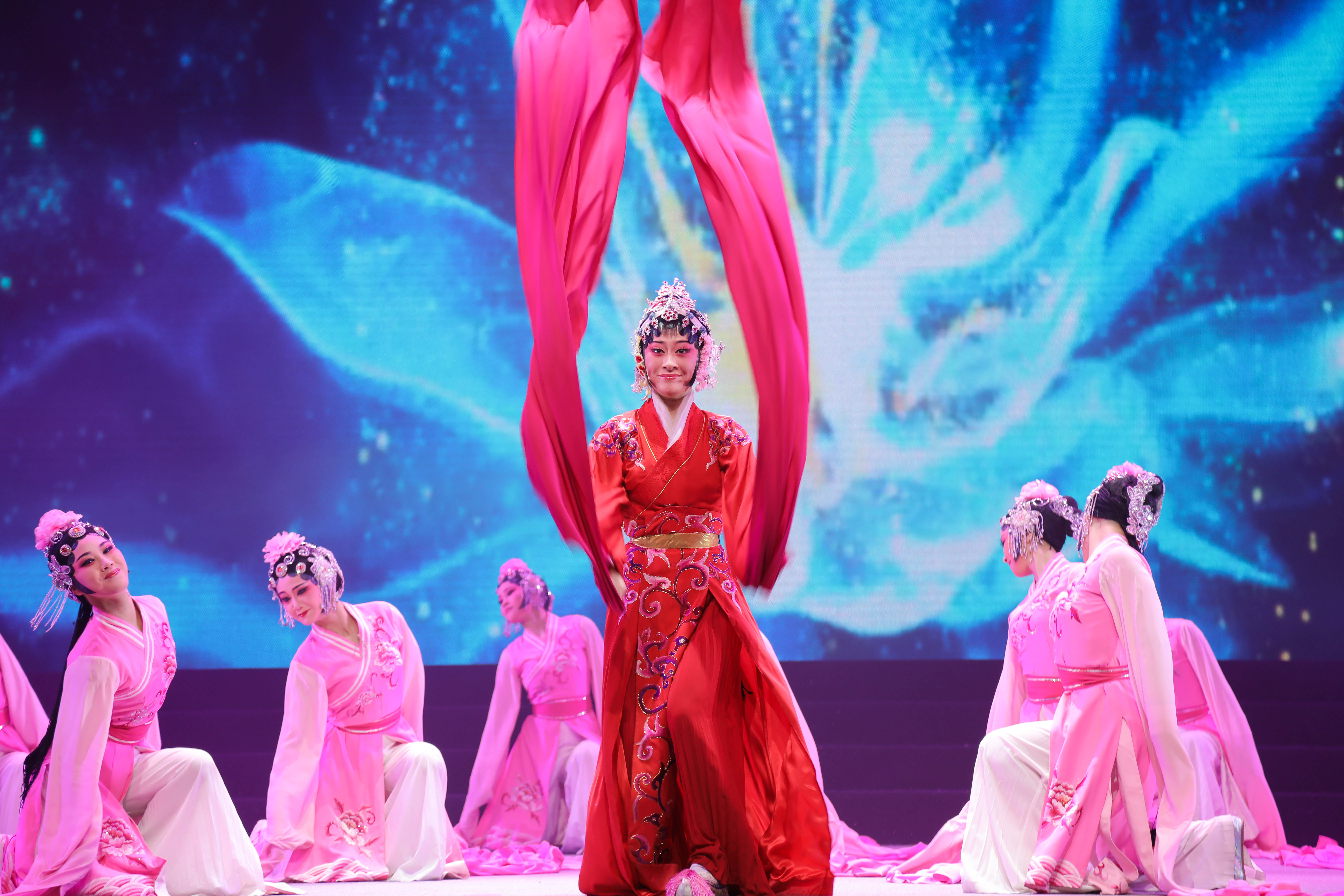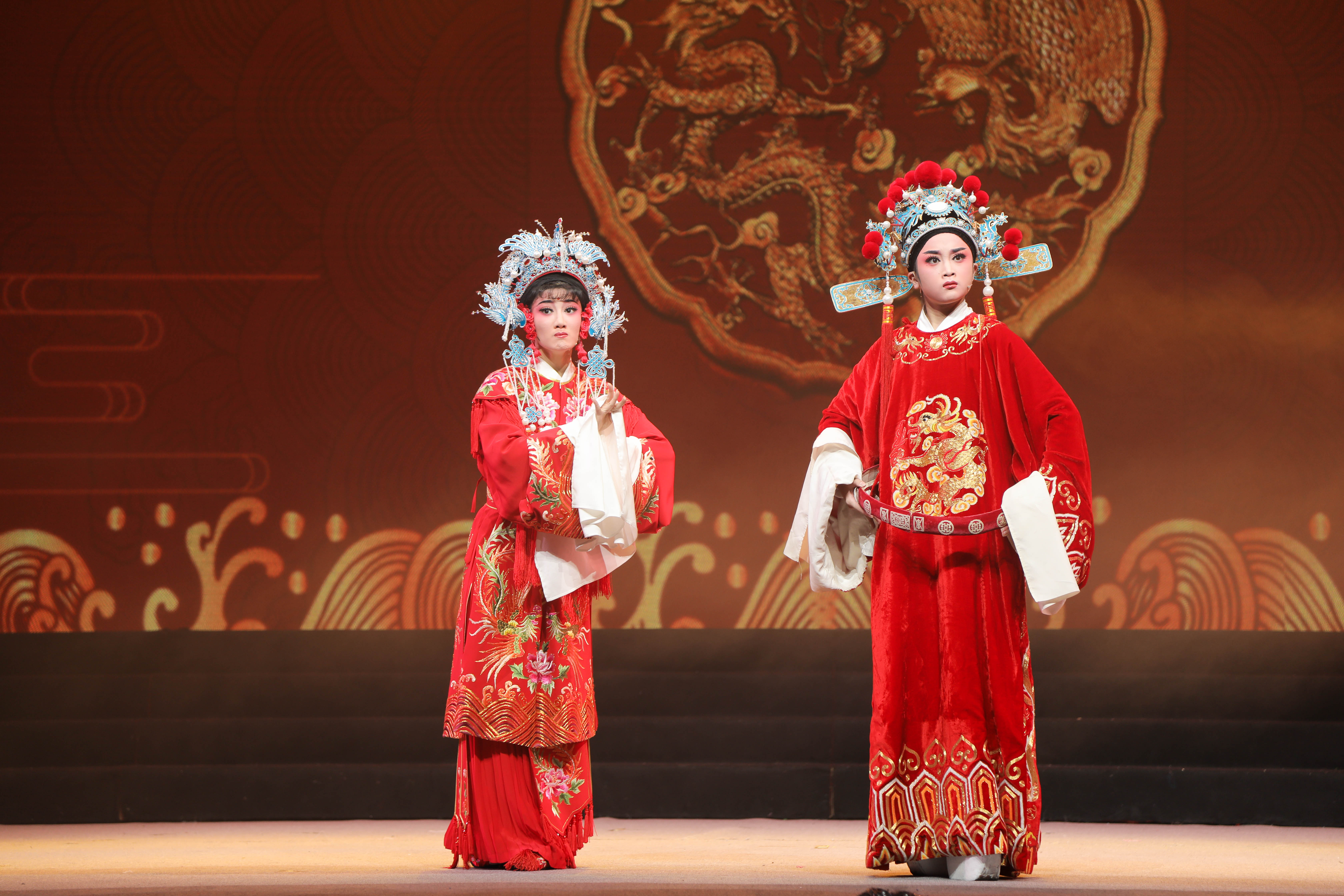 戏曲舞蹈《行之初》拉开了《越•行》的序幕,越剧折子戏《打金枝•闯宫》《梁祝•回十八》《牡丹亭•幽媾》《蝴蝶梦•劈棺》《白蛇传•断桥》《吕布与貂蝉•小宴》将越剧特有的戏曲魅力展现得淋漓尽致。《打金枝•闯宫》中公主的傲娇和可爱令人印象深刻;《蝴蝶梦•劈棺》这一唱腔与技巧皆十分精湛的花旦戏,加入了跪转、抢背、尸倒、串翻等一系列高难度动作更是赢得了观众的阵阵掌声;《吕布与貂蝉•小宴》是三国戏中的《连环计》,吕布一见貂蝉,便心慌意乱,演员活灵活现地刻画出他在美人面前出的洋相。“情不知所起,一往而深”这一千古名句,在《牡丹亭•幽媾》中让人再次深有感触。尾声《行之行》由14级和15级越剧班同学共同表演。演员们饱含深情的演出带动了台下观众的情绪,可以看出他们对舞台的热爱和对母校老师支涛、苏苏、周伟君、吕静、俞会珍等的感恩之情。
