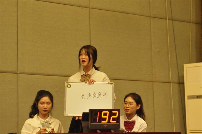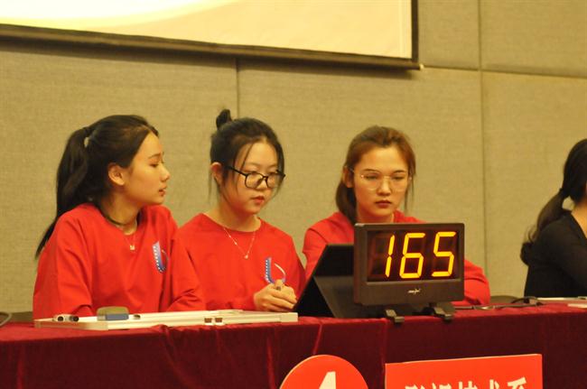 决赛以全校6系参赛队现场竞答的方式进行,分为风貌展示、必答题、抢答题、风险题4个环节。在竞赛各个环节,选手们对答如流,自信满满,答题正确率极高。因为竞争激烈,抢答环节不时出现提前摁响抢答器而被扣分的情况,现场气氛紧张热烈,在台下观摩的学生代表也充满激情,掌声喝彩声不时响起。