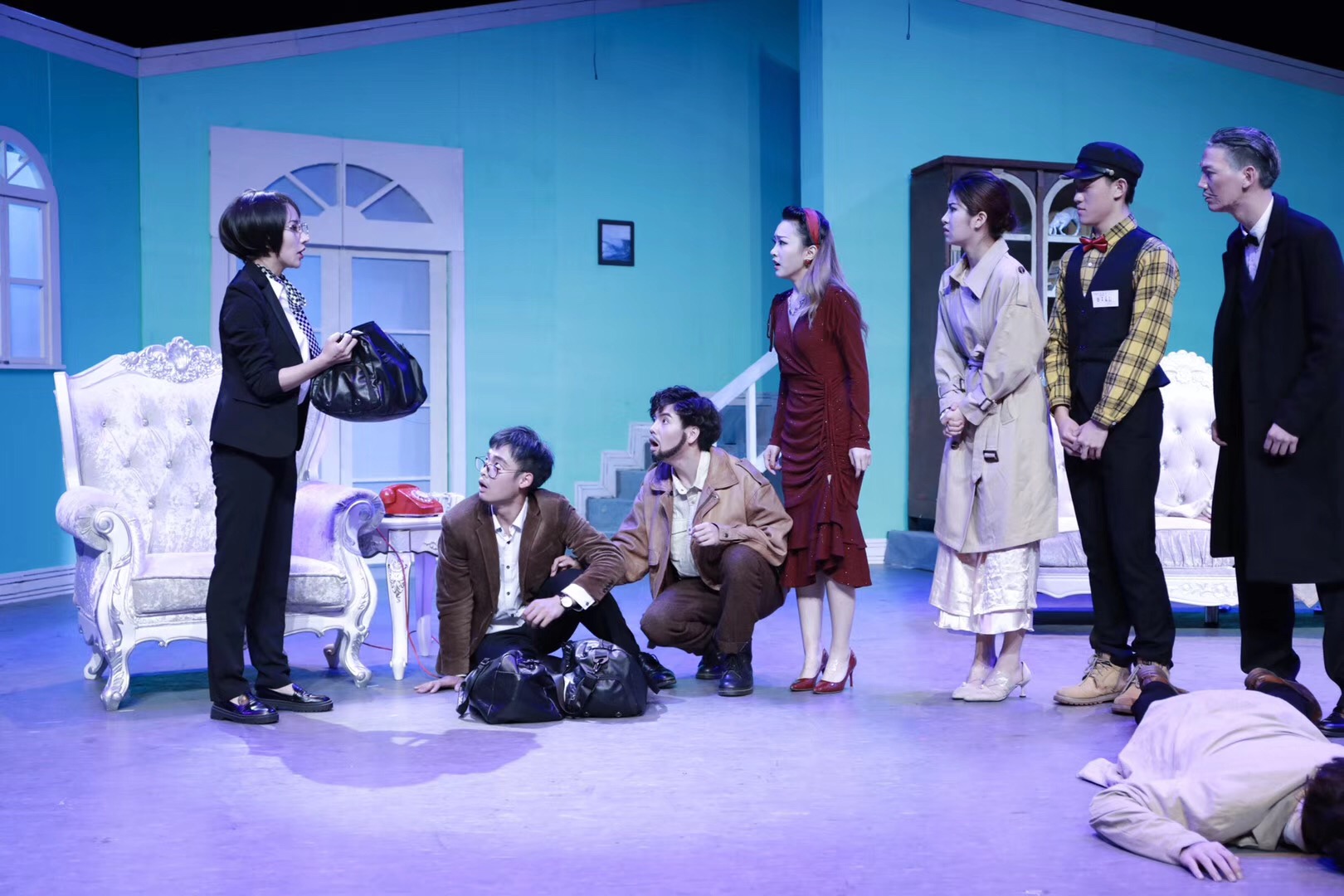 合成阶段,负责灯光音响的同学们就要连续工作好几天了,跟导演在一起,看每一景的效果、观察演员调度,以及在灯光配合下,观察有没有需要调整的舞美细节,另外还要和导演讨论布景的调度方式,进景节奏与音乐的节奏相配合等等。