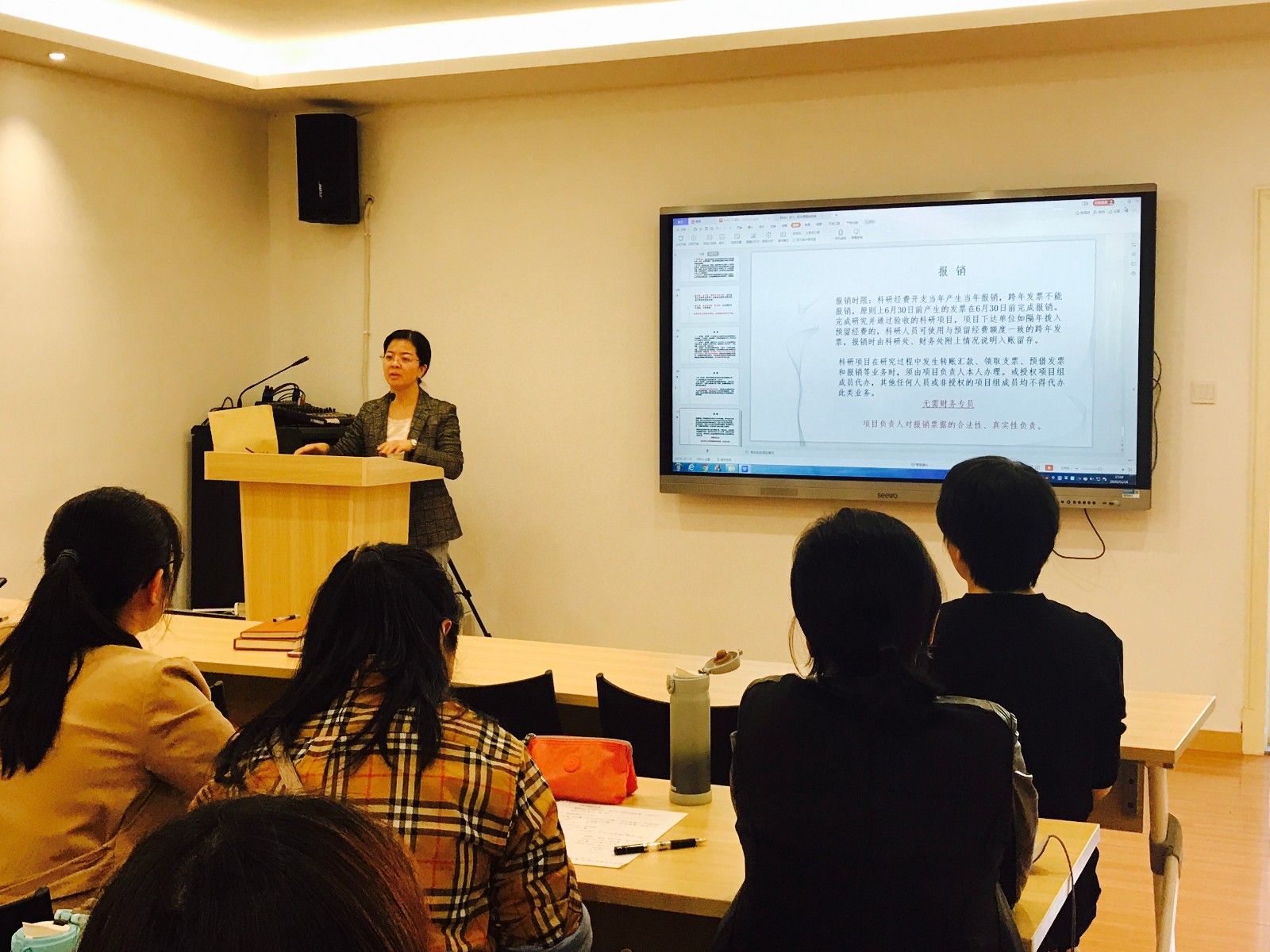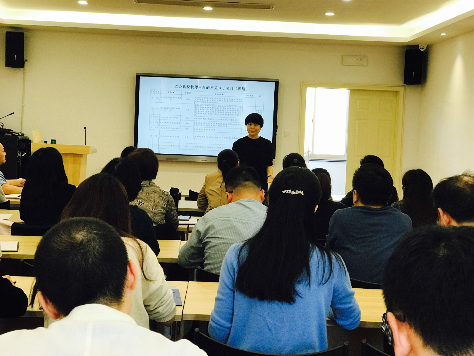 吕灵芝有着十五年科研工作经验,她从“适合我校教师申报的课题”“课题申报中需注意的几个问题”“经费预算和报销事项”三方面对科研工作进行了系统梳理,并针对文管系教师的专业情况,对特定的几个课题项目做了重点介绍,鼓励老师们早做准备,积极申报。