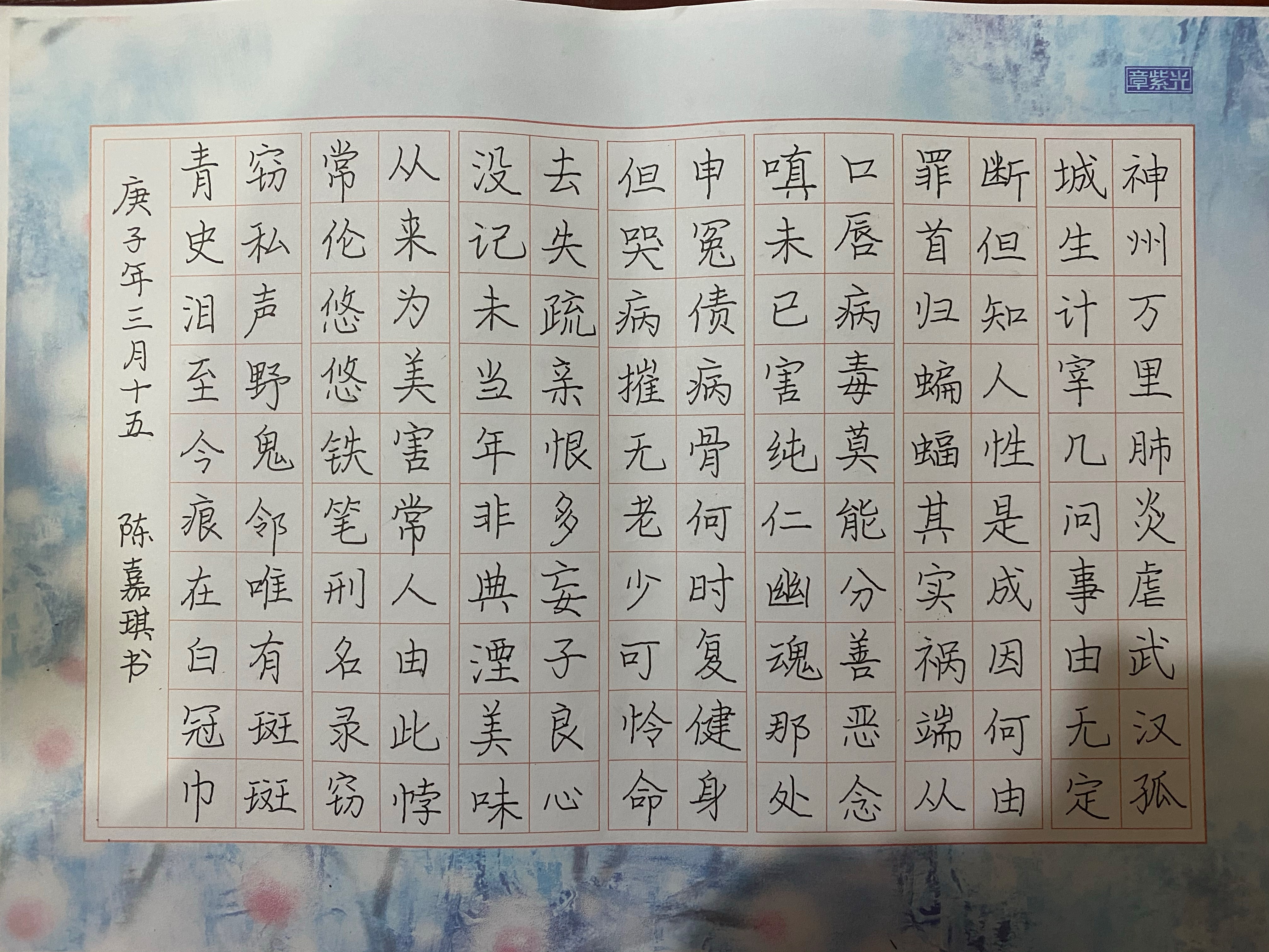 音乐系党总支举办“笔墨抒怀 抗击疫情”硬笔书法比赛