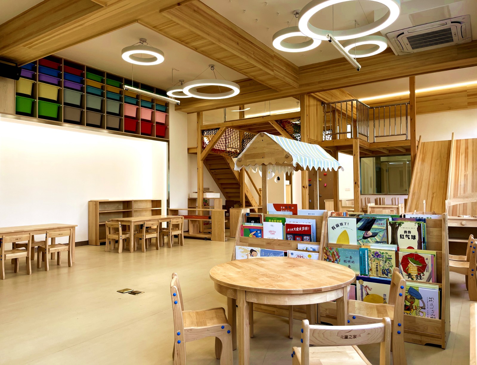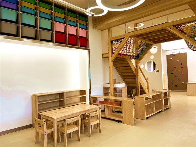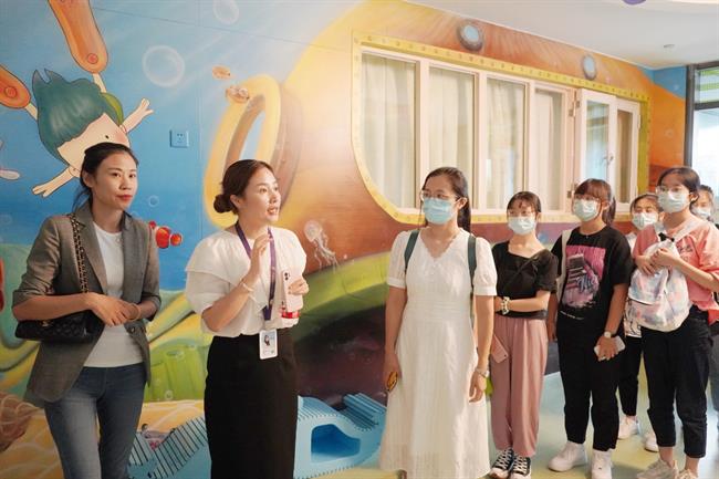 学校还专门建立了模拟幼儿园实训室和远程交互智慧实训室。实训室模拟幼儿园空间,设计了角色扮演区、盥洗室、美术区、益智区、绘本区、游戏区等区域,配有四百多册绘本及幼儿园玩教具,让学生在校学习期间就能感受到幼儿园的工作环境。远程交互智慧教室实训室,除了常规的理论教学,可以与合作幼儿园线上互动,实时观看幼儿园的工作流程,比如保育员怎么配餐,孩子吃完后如何收回餐具等,还可以线上提问,及时解决学习上的困惑。