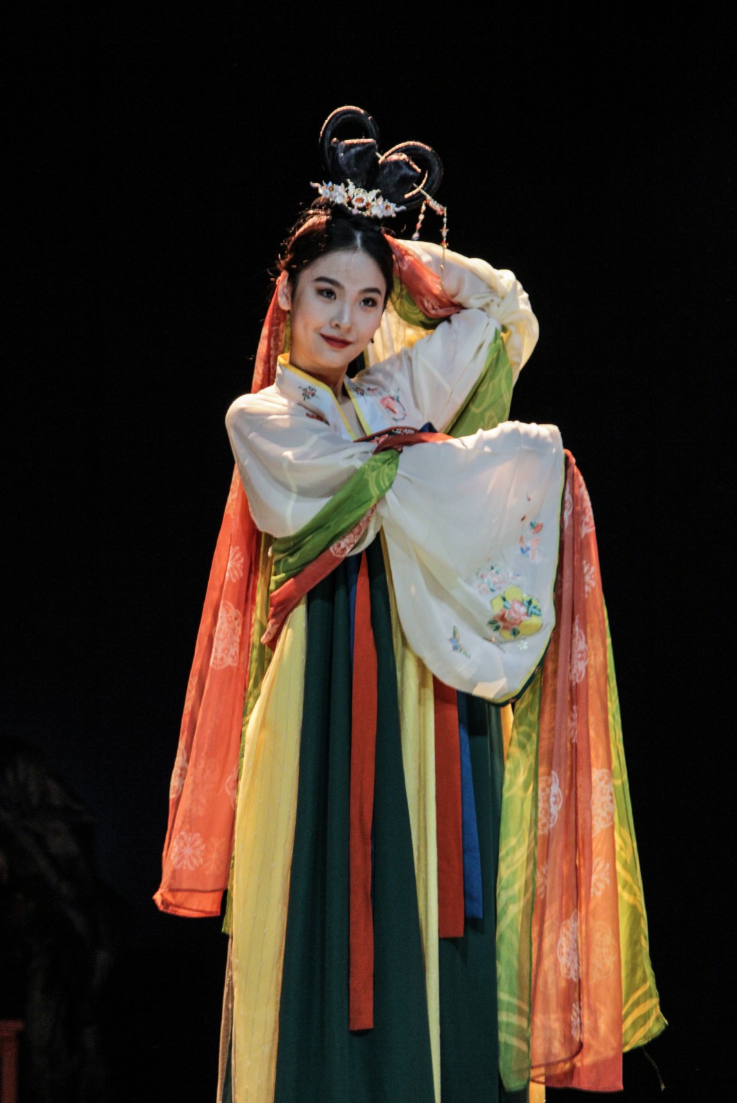 当晚演出节目丰富多彩,既有台词表演,也有经典诗词朗诵,还有礼仪服饰、情景剧、舞蹈等多种类别,充分展示了同学们丰厚的艺术素养。