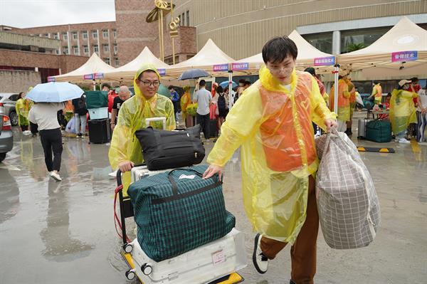 虽然天空下起了小雨,但雨水丝毫无法冲刷同学们的热情。兴奋,激动,却也少不了紧张,但更多的还是憧憬。他们的大学生活,以脚下这块土地为起点,开始!