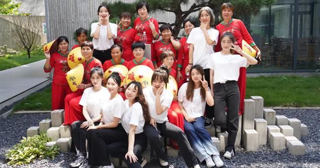 负责和余东村对接的是浙艺课程研发团队。团队针对余东村农民画的资源禀赋,带队教师和同学们深入村民创作现场,和村民们展开多次面对面研讨,最终研发了木刻版画、扎染、剪纸、编织等农民画特色非遗研学课程,既为余东的农民画添上了非遗技艺的新元素,也为余东乡村旅游带来了研学新项目。