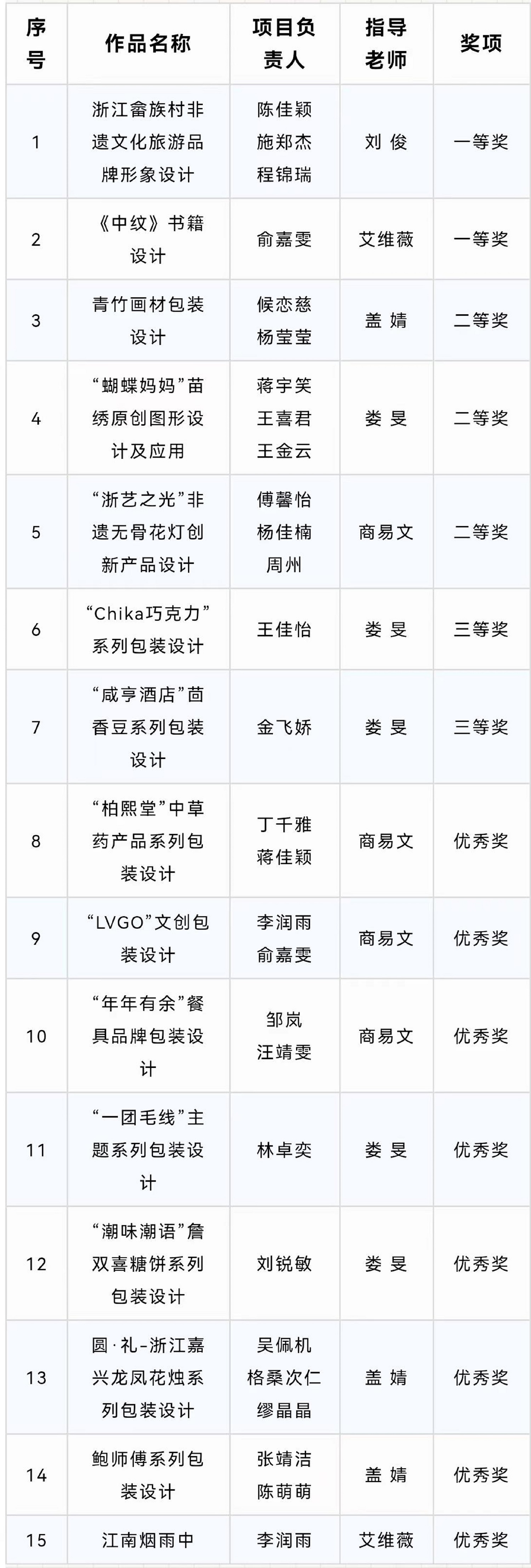 获奖名单