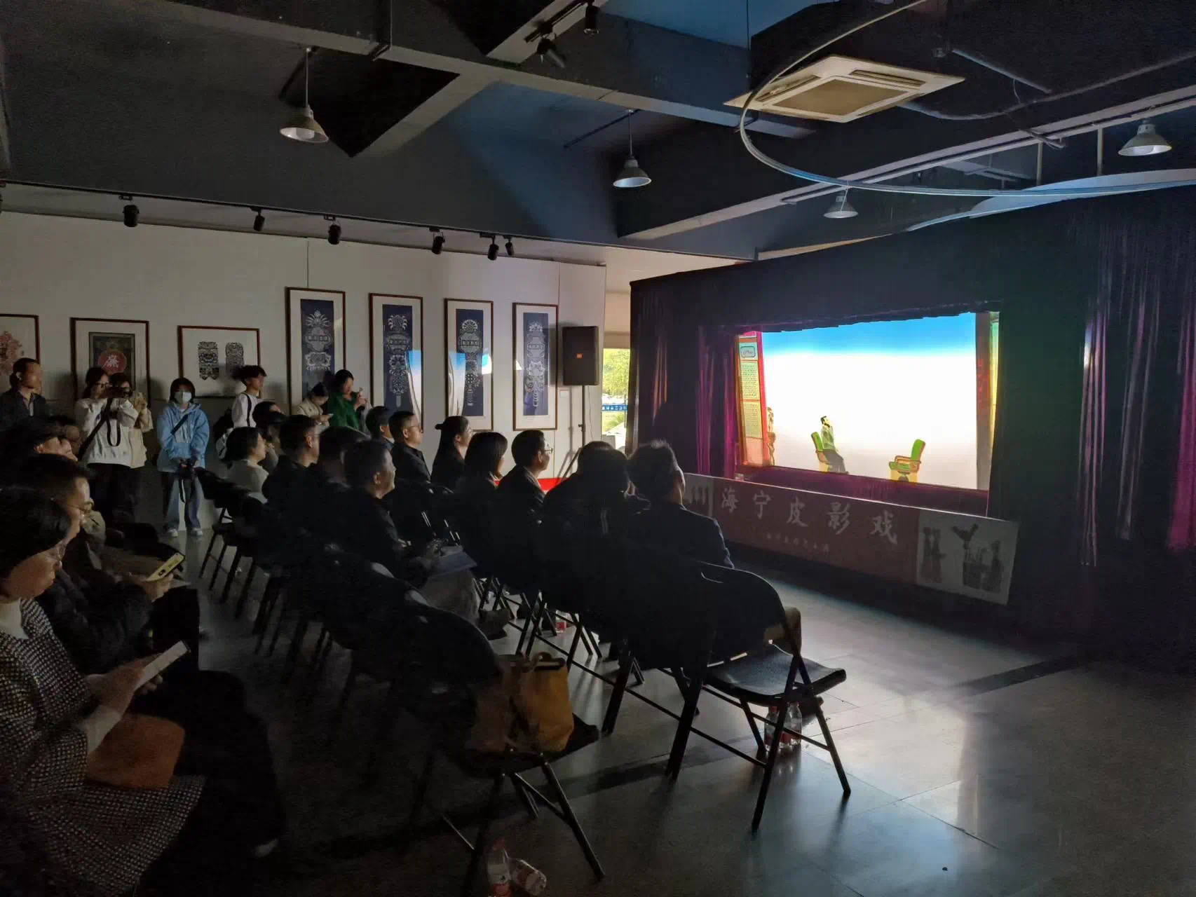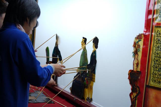 开幕式结束后,领导、嘉宾和师生观看了皮影戏廉政作品《纪念品》《清官廉吏许汝霖》,共同参观了作品展。