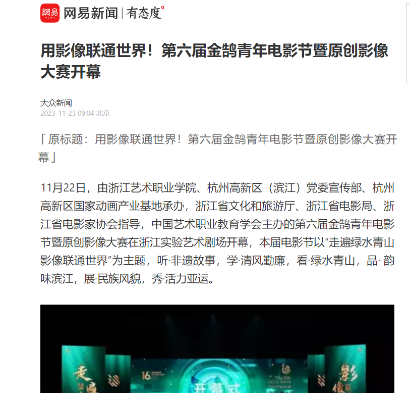 网易新闻:用影像联通世界!第六届金鹄青年电影节暨原创影像大赛开幕