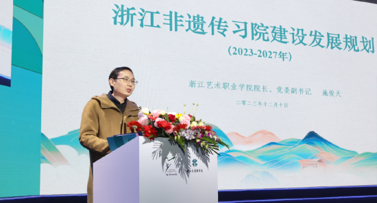 会上施俊天发布浙江非遗传习院(筹)五年规划。从目标与定位、组织架构、建议任务三大方面,系统规划了未来五年发展。浙江非遗传习院(筹)包括教学部、研究部、产学部等部门。教学部设立教学中心与教务中心,通过优化专业设置,完善课程建设,建成浙江特色高水平非遗专业群,打造非遗保护传承、经营管理与传播的高素质复合型人才培养基地;研究部设立学术研究中心与技术研发中心,建立以非遗研究为特色的浙江省哲学社会科学研究基地、技术研发与非遗文创高地,打造国内职业院校领先的高层级非遗研究与技术技能研发平台;产学部设立产业学院与实践基地,通过校政行企合作,全方位推进产教深度融合人才培养模式改革,打造服务新发展格局的浙江非遗产教融合共同体。