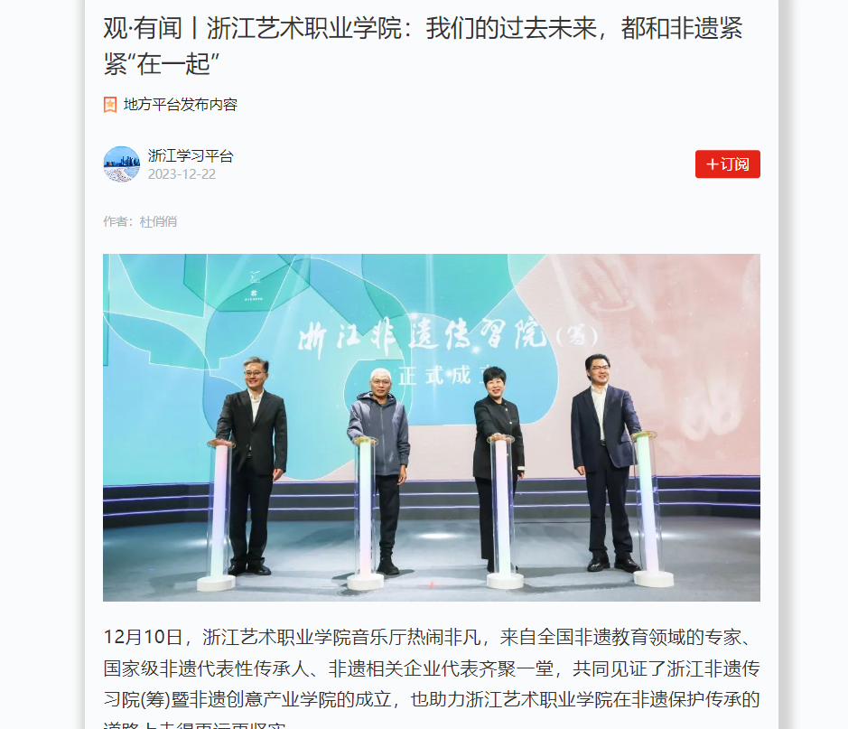 上一篇: 浙江电视台:浙江非遗传习院(筹)暨非遗创意产业学院成立下一篇:
