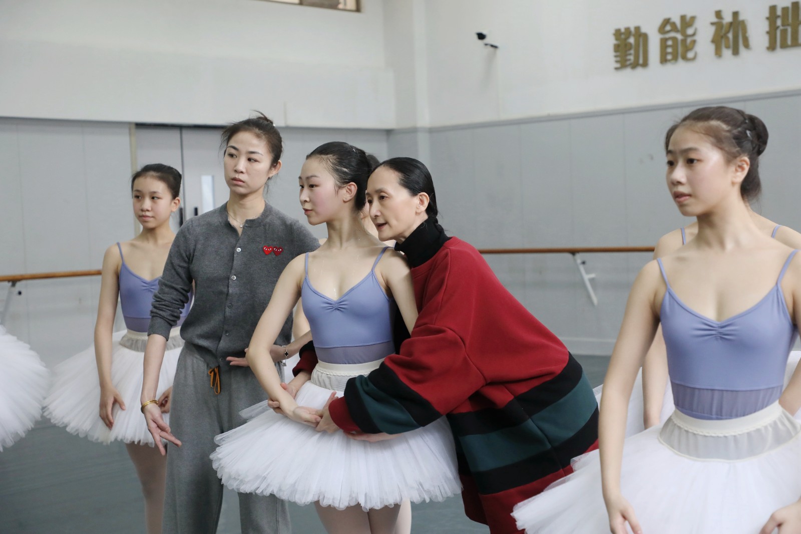 交流中,冯英现场做示范,对学生进行指导,手把手指点学生的动作,从呼吸、姿势等方面详细讲解如何把整套动作做到位,让舞蹈呈现更细腻、连贯。