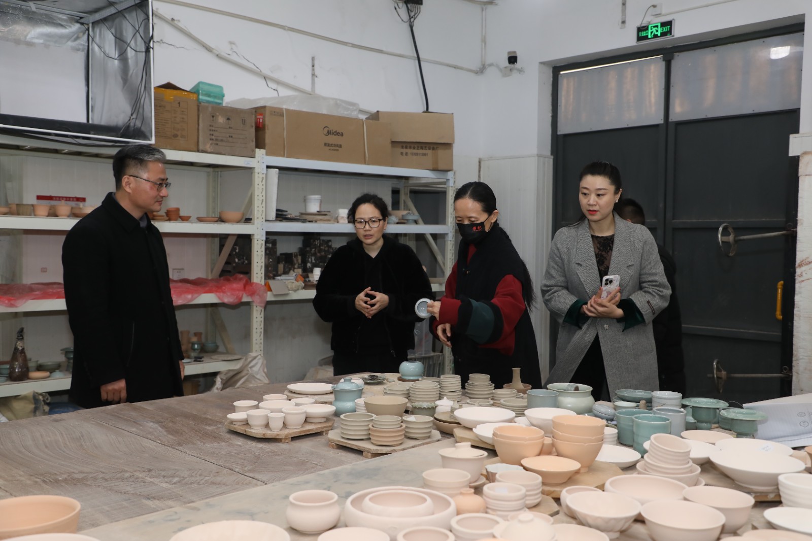冯英一行还参观了“匠心守艺”手工艺教学成果展、浙江实验艺术剧场、陶艺室、文物修复实训室等。