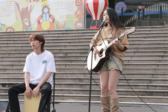 吉他社的弹唱悠扬动人,随着轻轻拨动的琴弦,悦耳的歌声萦绕耳畔,迎着徐徐的春风,美妙的旋律在上空交织,歌声不绝于耳。观众们不由自主地跟随着旋律,沉浸在美妙的音乐世界里。
