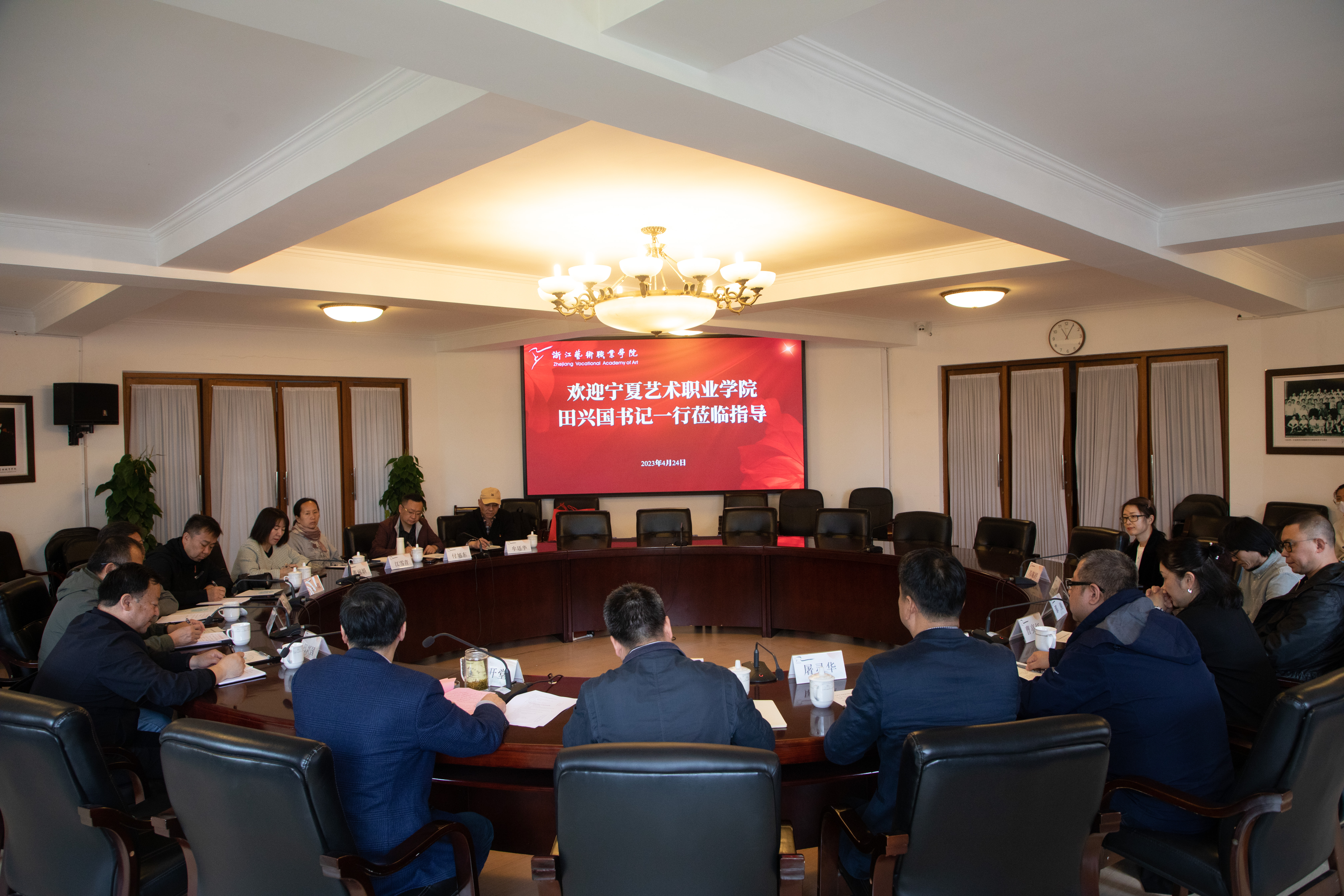 宁夏艺术职业学院党委书记田兴国对于来到浙艺交流学习感到荣幸,浙艺有美丽的校园、辉煌的历史、累累的硕果、荟萃的人才、先进的理念,尤其是浙艺特色化办学中的订单式培养模式很受启发。西部地区艺术院团市场对人才需求有制约。宁夏艺术职业学院希望在体制机制上做革命性改变,把艺术专业发展得更有影响力,希望为地方文化事业和人才培养作出贡献,相信浙艺的经验能够带来启发和帮助。