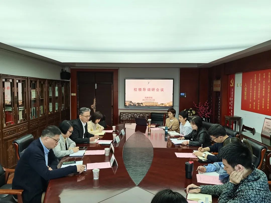 为深入开展学习贯彻习近平新时代中国特色社会主义思想主题教育,5月11日,校党委书记薛亮,校党委委员、副校长支涛及相关职能部门负责人赴戏曲学院围绕“双高”建设开展调研。戏曲学院领导班子、相关教研室主任和教师代表参会。