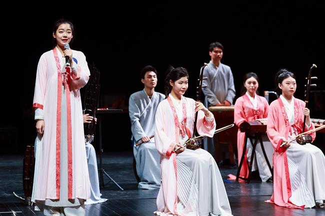 器乐合奏赛场同样精彩纷呈,民族器乐组自选曲目《沙漠玫瑰》让人置身苍茫的西域风情,宛若少女踏着脚铃随风飘来;传统乐曲《春江花月夜》旋律典雅优美,宛如一幅山水画卷,把春天静谧的夜晚景色,一幕幕展现在观众眼前;婺剧《闹花台》在演奏的过程中“闹”出了气氛,闹出了趣味,像民间的闹元宵、闹花灯一样热烈喜庆。