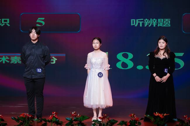 艺术素养测试是艺术专业技能比赛的必选项目,该项目采用现场问答形式进行,每队3位选手从音乐理论常识题、听辩题、视唱题中随机抽取题目回答,每题回答时间30秒以内,非常考验参赛选手的知识储备和心理素质。多数参赛选手都能够从容应对,展示出了扎实的综合素养水平。