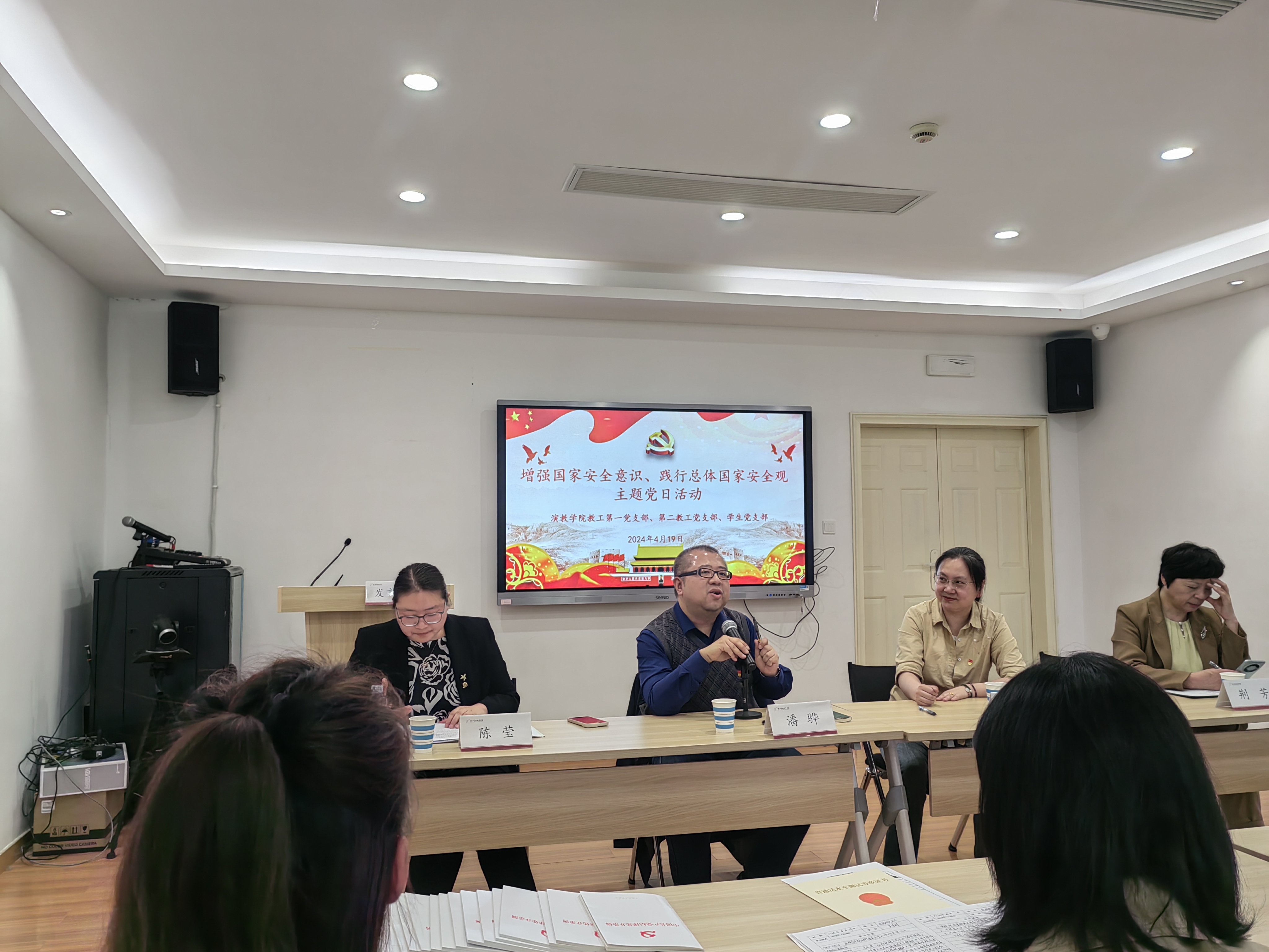 为增强全体教职工的国家安全意识,践行总体国家安全观,4月19日中午,演艺与教育学院在图信研讨室(二)召开四月主题教育会议。学院领导班子、全体党员、全体教职工参会,会议由党总支书记戴闵青主持。