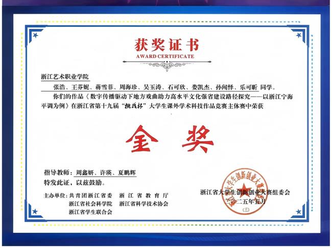 深耕教科研创融合发展,推动成果从“数量积累”向“质量跃升”转变,产出了一批具有影响力的高水平成果。在教学改革方面,获全国职业教育优质教材、国家教材奖二等奖,省级教师教学能力比赛一等奖1项、三等奖3项。开展“1+X”证书试点工作,组织实施浙江省礼仪主持人、音响调音员等职业技能鉴定,累计为行业培养持证人才800余人次,推动“岗课赛证”融通。在科研创作方面,完成国家艺术基金资助项目1项,立项国家社科基金艺术学项目1项,摄制省教育厅系列微电影《我爱我的老师》,自产上线微短剧《墨痕未干时》,浙江省舞台艺术重大主题创作揭榜挂帅项目原创话剧《梦想天堂》入选第十六届浙江省戏剧大赛终评剧目,清廉题材微电影《净・铅华》获国家级金奖。